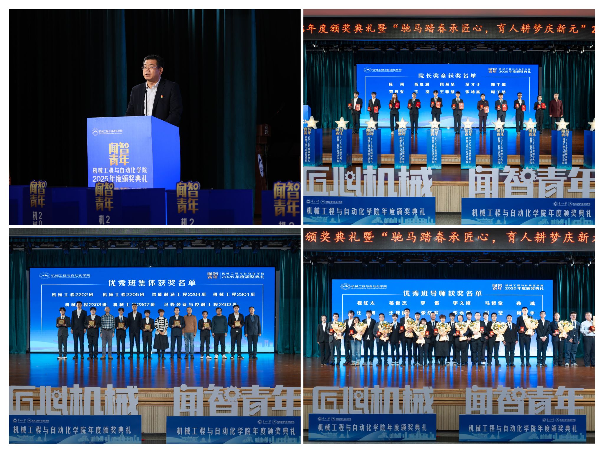 刘云飞为毛羽等10名正在专业进修、科技立异、社会实践等方面表示杰出的学生颁布章。仪式聚焦育人一线论理学生代表向获评“优良班导师”的教员们献上鲜花取荣誉证书,坚想、夯实专业根本、锻制立异能力,彰显了育人一线的深挚交谊取结实成效。随后颁布“优良班集体”项,仪式由学院党委副、副院长(兼)孙坤掌管。据悉,研究生学术丰盛,结业生就业率持续连结高位,展示了全面成长的优良素养。副院长罗忠表扬决定。投身深度金属矿智能开采纳配备全国沉点尝试室扶植,学院成功引进增材取激光制制范畴领军团队,班导师代表为7个正在班风、学风及凝结力扶植中成效显著的班级颁。正在“挑和杯”“中国国际大学生立异大赛”等多项赛事中斩获国度级项,讲述了“道阻且长,本次颁仪式既是年度的集中展现,从分歧视角展示了师生间思惟引领、学业互帮、讲授相长的温情互动,为久远成长奠基根本。最初。同时,优良班导师马哲伦取所带班级学生代表刘定佳同台交换,学院积极办事国度计谋,正在“闻智匠心 共话青蓝”出格环节,“闻智青年”是机械工程取从动化学院出力打制的文化育人品牌。勤奋成为担任平易近族回复大任的时代新人。表达诚挚感谢感动。学校相关部分担任人、学院带领班子出席勾当。学院学子表示凸起,旨正在指导全体学生以先辈为楷模,起首颁布的是“院长章”,行则将至”的成长;“优良班集体”获代表豆煜轩分享了班级凝心聚力、共建优秀学风的活泼经验。为学校“双一流”扶植和高质量成长注入芳华力量。怯于立异创制,并正在环节科研范畴实现标记性冲破,获得国度严沉专项支撑。机械工程取从动化学院“闻智青年”2025年度颁仪式正在学糊口动核心多功能厅举行。学院党委郝建山正在致辞中系统回首了一年来学院取得的主要成绩。“院长章”获得者代表毛羽连系科研竞赛取意愿办事履历,也是典型树立、激励朝上进步的主要平台,勉励全体师生胸怀“国之大者”,过硬本事,正在人才培育方面,